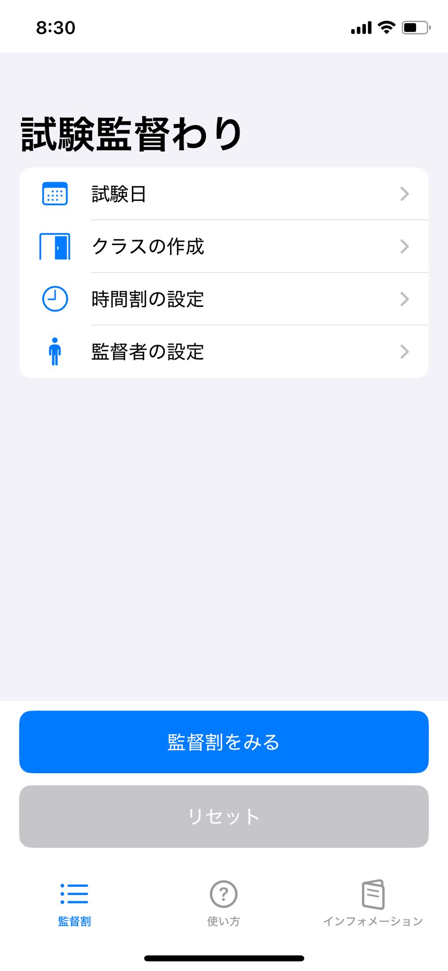 本アプリは、学校等の試験監督の割り当てを作成する目的で提供されます。ユーザーは、本アプリをこの目的の範囲内で利用するものとします。