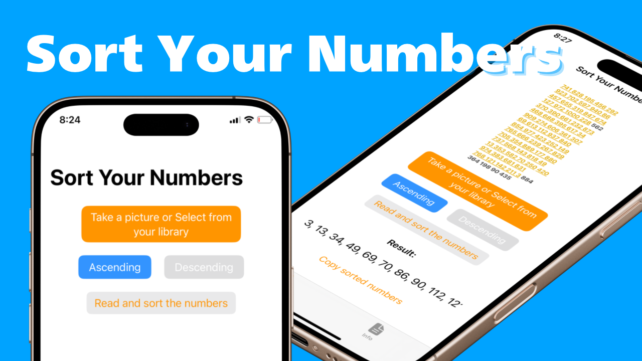Sort Your Numbers is intended for personal use to extract and sort handwritten or printed numbers from images using your device’s camera or photo library.